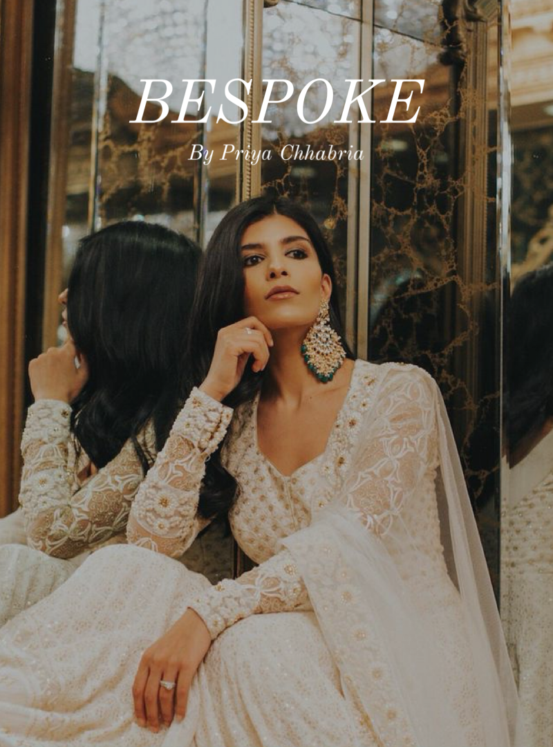 The Bespoke experience at "Priya Chhabria" is a metamorphic one. Every Garment starts its journey as a notion. A design eager to be realized. The fabric swatches selected, the embellishment finalised, and measurements meticulously noted during the initial consultation serve as mere mascent curation of what is to come.